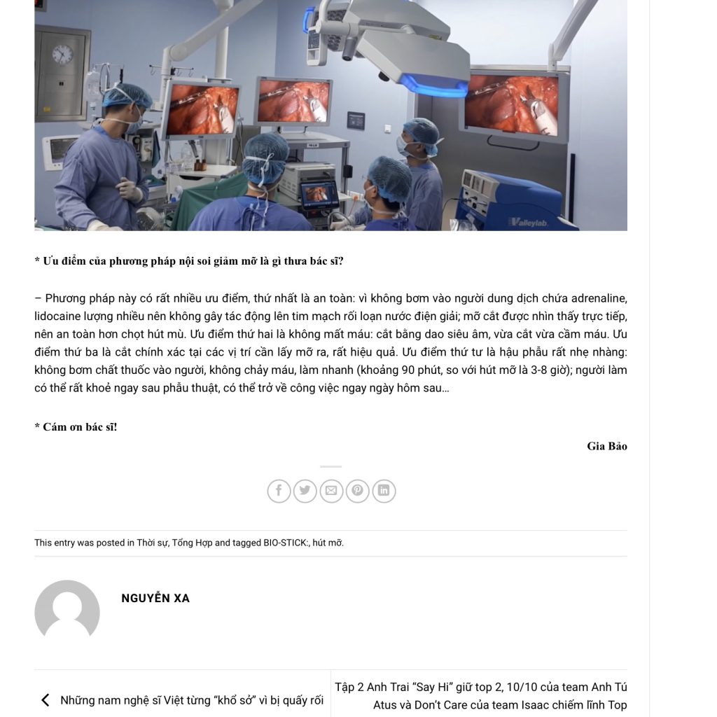 "PTNS GIẢM MỠ" đảm bảo AN TOÀN và Thẩm Mỹ.